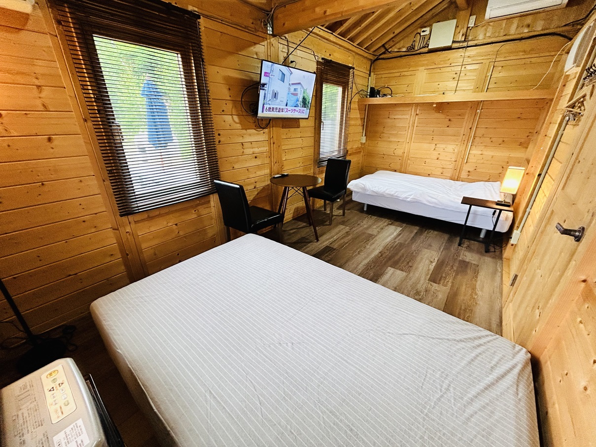 木の温もりを感じるお部屋になります。 ◆白樺の森コテージA棟~F棟(トリプルベッドタイプ) 自然の中でのんびり暮らせるコテージです。セミダブルベッド3台とロフト付きで最大7名の宿泊が可能です。ミニキッチン付きで自炊も可能です。 設備:テレビ、エアコン、冷蔵庫、電子レンジ、洗濯機、調理器具、食器、BBQセット(テラスでの利用も自由です。) ◆白樺の森コテージS棟(ツインベッドタイプ) 自然の中でのんびり暮らせるコテージです。セミダブルベッド2台で最大4名の宿泊が可能です。ミニキッチン付きで自炊も可能です。 設備:テレビ、エアコン、冷蔵庫、電子レンジ、洗濯機、調理器具、食器)